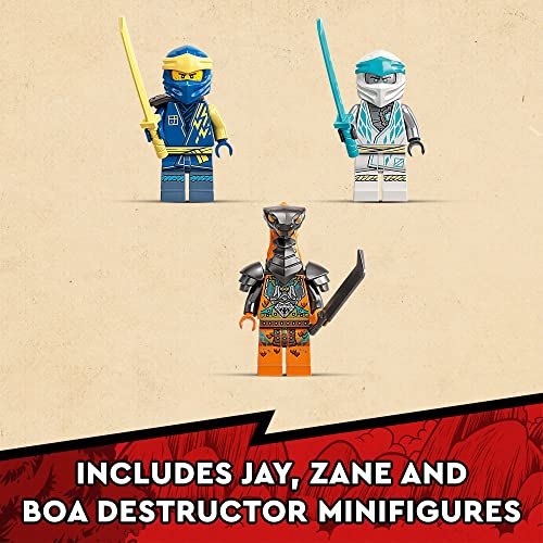 - 3 minifigures – Ninja toy includes Zane and Jay, both with swords, plus Boa Destructor with his own large sword, for kids to stage death-defying battles