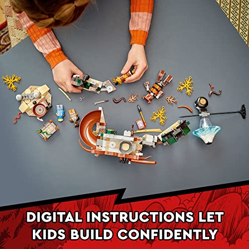Details: This Ninja Training Center (71764) playset is packed with everything NINJAGO fans aged 7+ need to help their heroes master Spinjitzu. The impressive buildable kit offers a set of challenges for the ninja, including going down a slide, jumping over a snake pit and fighting a dummy mech.Enthralling ninja battles.This Buildable kit includes 3 minifigures: Jay armed with a sword, Zane with a spinner and sword, and Boa Destructor with a sword, to play out death-defying battles. New for January2022, when kids defeat the ninja enemies and complete their training and mission, they are rewarded with a collectible banner.Extra creative fun for LEGO® builders.The playset comes with interactive digital building instructions to make the building experience even more fun. Available in the free LEGO® Building Instructions app for use on smartphones and tablets, the zoom and rotate tools help you visualize the model as you build. Builders can also save their progress at any point in the app.