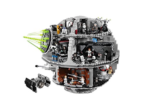 Recreate the action and adventure of the Star Wars™ movies with the ultimate Death Star playset. This amazingly detailed battle station features an incredible array of minifigure-scale scenes, moving parts, characters and accessories from Episodes IV and VI on its multiple decks, including the Death Star control room, rotating turbolaser turrets, hangar bay with TIE Advanced starfighter, tractor beam controls, Emperor’s throne room, detention block, firing laser cannon, Imperial conference chamber, droid maintenance facility, and the powerful Death Star superlaser…plus much more! Swing across the chasm with Luke and Leia, face danger in the crushing trash compactor, and duel with Darth Vader for the fate of the galaxy. Includes 24 minifigures and droids, plus all-new Dianoga™ trash compactor monster. Also includes Luke Skywalker, Han Solo, Obi-Wan Kenobi™, C-3PO™, R2-D2™, Princess Leia™, Chewbacca™, Luke Skywalker (Jedi Knight), Darth Vader™, Grand Moff Tarkin™, Emperor Palpatine™, 2 Stormtroopers, 2 Emperor’s Royal Guards™, R2-Q5™, and mouse droid.