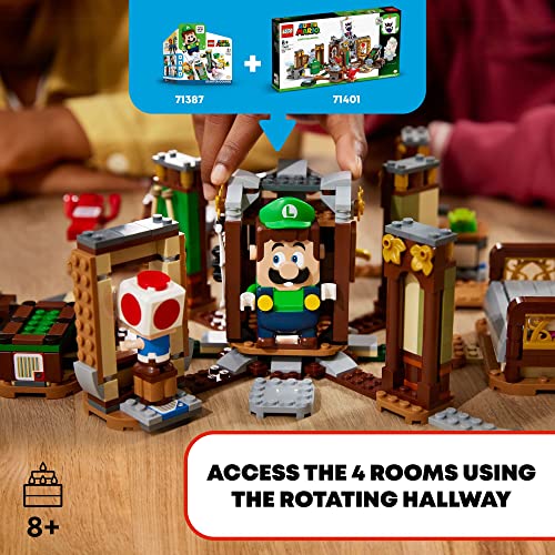 Details: Create a gem-hunting, ghost-battling LEGO® Super Mario level with Luigi’s Mansion Haunt-and-Seek Expansion Set (71401) for ages 8 and up. It features a new-for-January 2022 start plate and a rotating hallway to access each room. There are lots of fun challenges for LEGO® Luigi or LEGO® Mario (figures are not included): rescue Toad from a painting, uncover hidden gems, battle a haunted pool table, defeat a Garbage Can Ghost and a Grabbing Ghost, and topple King Boo from the tower. (Note: The71387 or 71360 Starter Course is required for interactive play.) This collectible toy playset makes a super gift for trendsetting kids. Check out the LEGO® Super Mario app for building instructions, creative ideas and more. Collectible Luigi’s Mansion sets offer spooky adventures with LEGO® Luigi as the hero. The puzzle-solving play is even more thrilling when family members play as a team and level up with the Poltergust (sold separately in set 71397) to defeat ghosts.